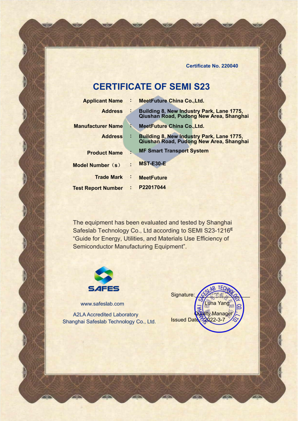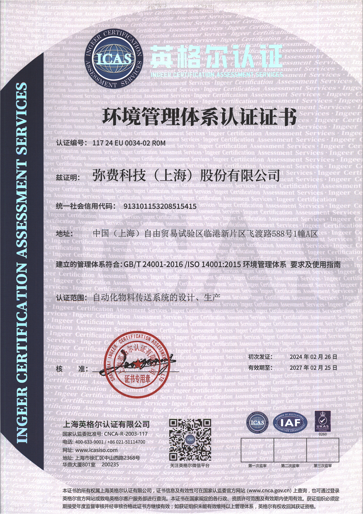 自 2018 年以来,Ebpay科技取得了国际标准化组织(ISO)质量管理体系(ISO 9001)、环境管理体系(ISO 14001)和职业健康安全管理体系(ISO 45001)认证。在AMHS产品技术体系领域,我们遵循半导体设备标准通讯协议,包括SEMI E37、 E82、E30、 E84、E10 等,使其易接入半导体晶圆厂MES系统来实现数据交互。
